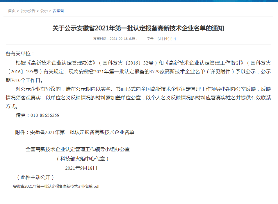 根據(jù)國(guó)家《高新技術(shù)企業(yè)認(rèn)定管理辦法》和《高新技術(shù)企業(yè)認(rèn)定管理工作指引》的相關(guān)規(guī)定,安徽譽(yù)特雙節(jié)能技術(shù)有限公司于2021年9月18日再次被認(rèn)定為國(guó)家級(jí)高新技術(shù)企業(yè)。