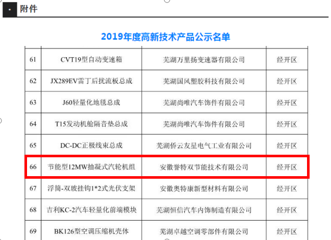 2020年1月6日,安徽省高新技術產(chǎn)品認定名單正式公布。我公司產(chǎn)品節(jié)能型12MW抽凝式汽輪機組喜獲認定,這次獲得高新技術產(chǎn)品認定再一次驗證了安徽譽特雙的卓越品質,同時也是對我司產(chǎn)品權威的肯定!