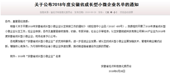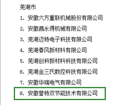 2018年8月29日,安徽省經(jīng)信委通過官網(wǎng)發(fā)布——2018年度安徽省成長型小微企業(yè)認(rèn)定名單,我公司安徽譽特雙節(jié)能技術(shù)有限公司喜獲認(rèn)定,為蕪湖市僅有的八家上榜企業(yè)之一,也是蕪湖國家級經(jīng)濟技術(shù)開發(fā)區(qū)和蕪湖高新技術(shù)創(chuàng)業(yè)園區(qū)唯一的入選企業(yè),含金量頗高。