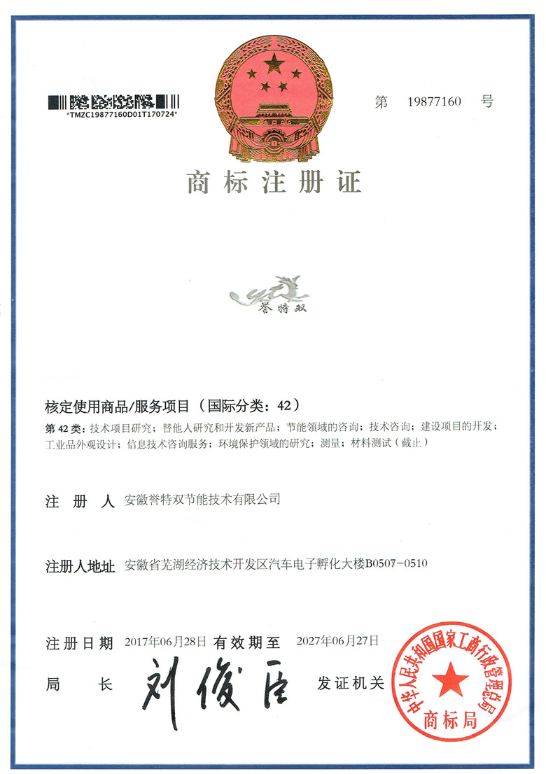 “譽特雙”寓意“譽滿全球、特效節(jié)能、雙向共贏“,此寓意也是我公司一直秉承的經(jīng)營理念;而“譽特雙”上“龍”的圖案,代表的是“譽天飛龍”的含義。