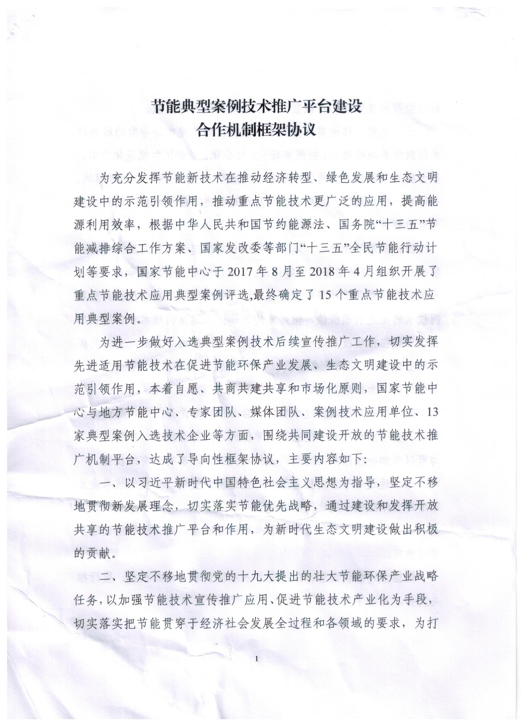 在對接會議現(xiàn)場,我公司與國家節(jié)能中心達(dá)成戰(zhàn)略合作意向,并進(jìn)行了現(xiàn)場簽約。國家節(jié)能中心的節(jié)能技術(shù)推廣合作機(jī)制從去年9月建立后,目前已簽約企業(yè)單位已76家,包括了技術(shù)企業(yè)、用能單位、研發(fā)機(jī)構(gòu)、宣傳媒體等,致力于打造一個開放、共建、共享的推廣平臺。