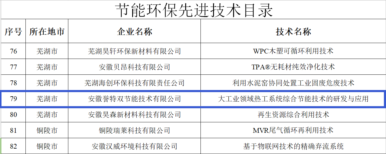 2018年11月28日,安徽省經(jīng)信委發(fā)布2018年度全省工業(yè)領(lǐng)域節(jié)能環(huán)保產(chǎn)業(yè)“五個(gè)一百”推介目錄,熱烈祝賀我公司安徽譽(yù)特雙節(jié)能技術(shù)有限公司“大工業(yè)領(lǐng)域熱工系統(tǒng)綜合節(jié)能技術(shù)的研發(fā)與應(yīng)用”入選節(jié)能環(huán)保先進(jìn)技術(shù)目錄,“汽輪機(jī)通流改造提效”入選節(jié)能環(huán)保重點(diǎn)項(xiàng)目目錄。