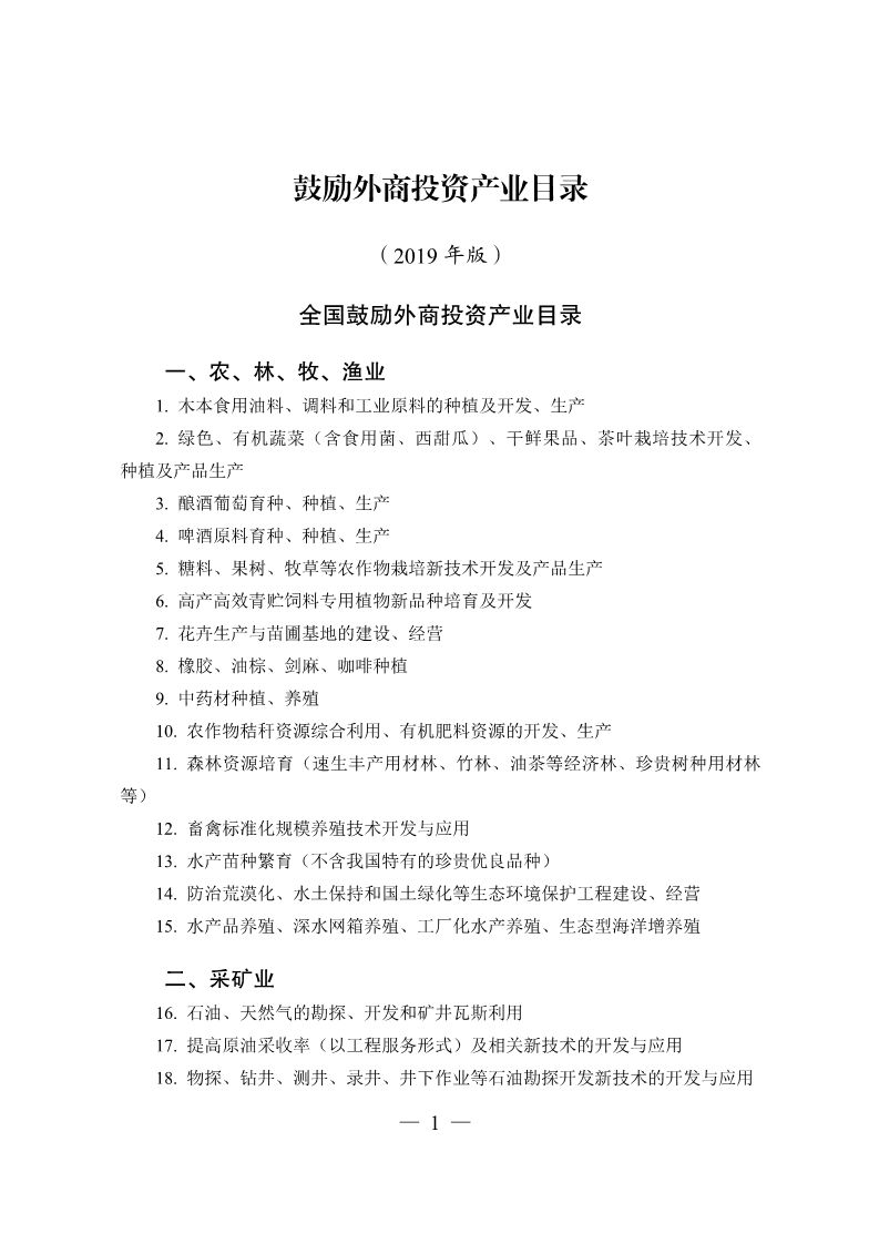 國(guó)家發(fā)改委 商務(wù)部修訂《鼓勵(lì)外商投資產(chǎn)業(yè)目錄(2019年版)》公開征求意見