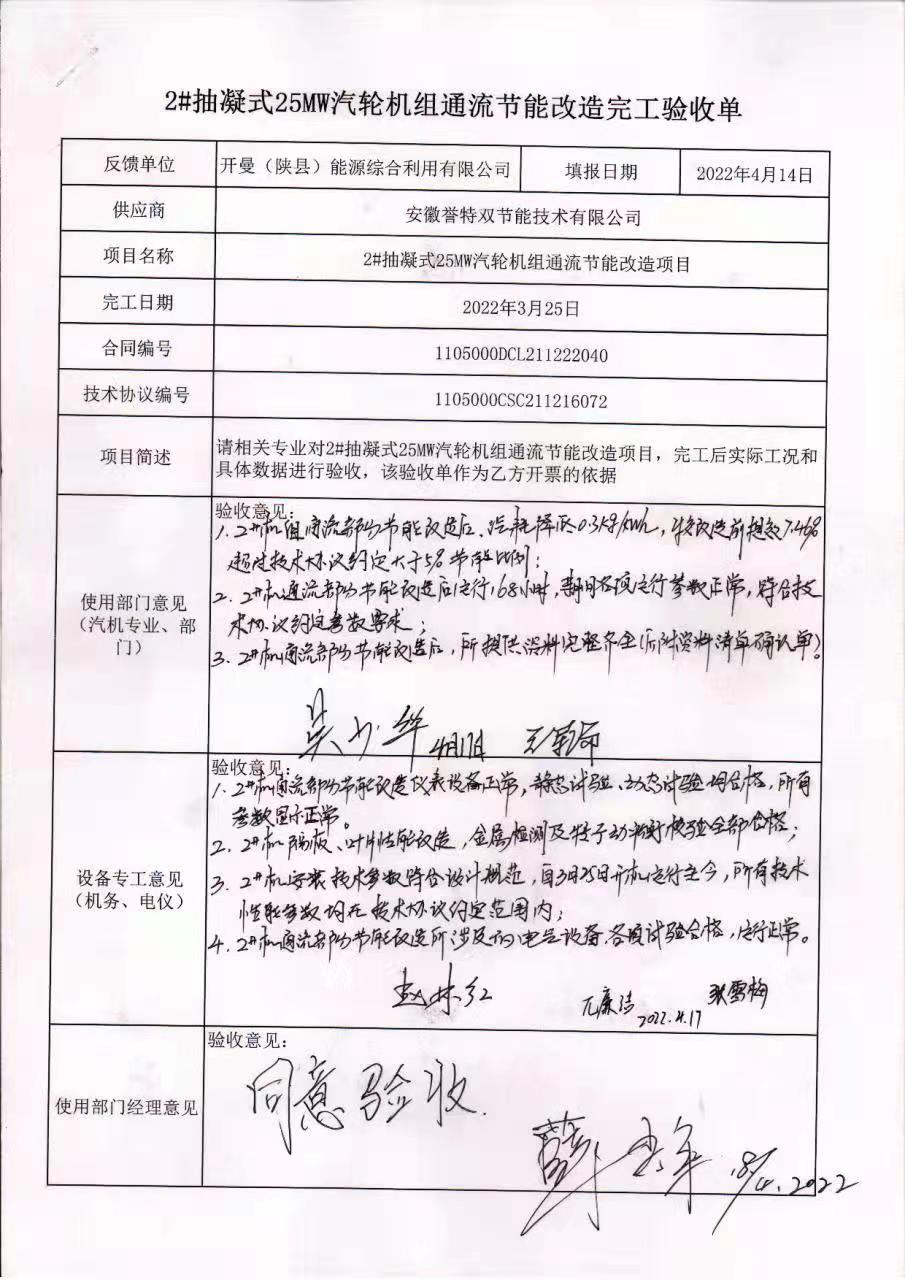 簡(jiǎn)訊——三門峽開曼能源25MW機(jī)組2#節(jié)能改造提效項(xiàng)目順利通過驗(yàn)收,節(jié)能提效比例遠(yuǎn)超合同約定!