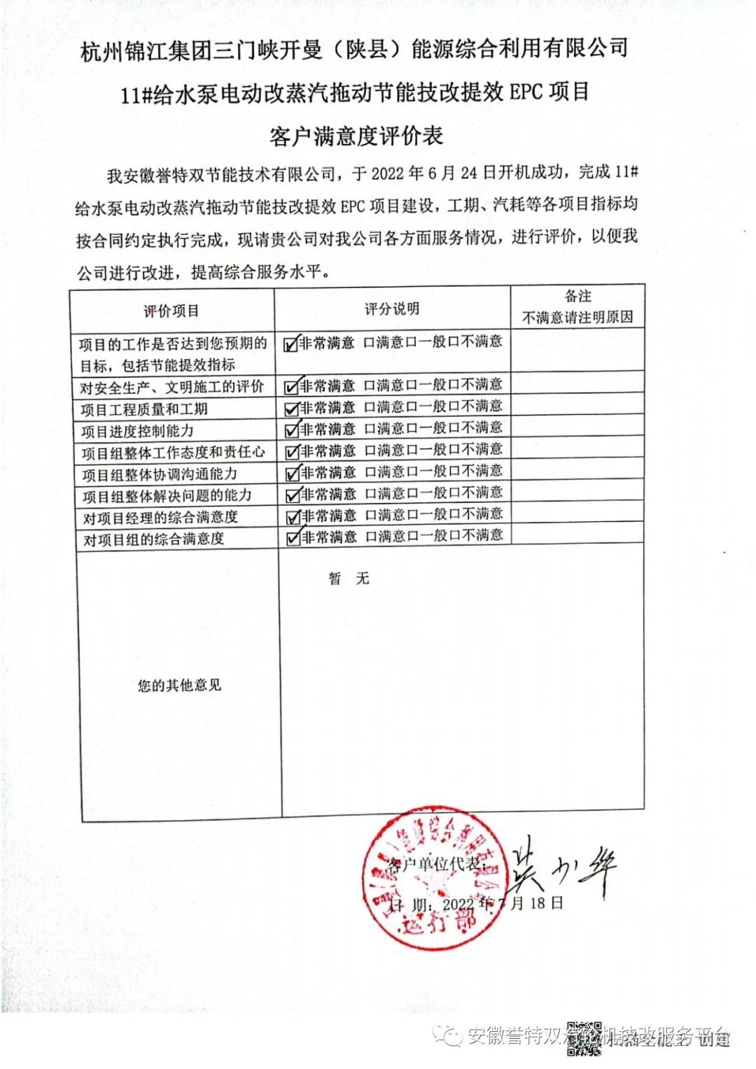 近期,我公司以EPC施工總包方式建設(shè)的中國五百強企業(yè)——孝義市興安化工有限公司、開曼(陜縣)能源綜合利用有限公司,兩臺2.1MW蒸汽拖動給水泵電改汽節(jié)能技改項目正式通過工程驗收。