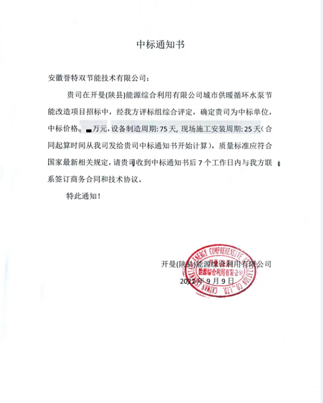 近日,公司中標(biāo)中國五百強(qiáng)企業(yè)杭州錦江集團(tuán)開曼能源3.15MW熱網(wǎng)循環(huán)泵蒸汽拖動節(jié)能改造項目。
