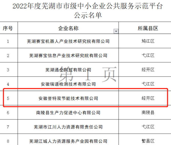 近日蕪湖市經(jīng)濟(jì)和信息化局發(fā)布《2022年度蕪湖市市級(jí)中小企業(yè)公共服務(wù)示范平臺(tái)擬認(rèn)定名單公示》,我公司再次被認(rèn)定為2022年度蕪湖市中小企業(yè)公共服務(wù)示范平臺(tái)。本次全市共計(jì)評(píng)選出8家中小企業(yè)公共服務(wù)示范平臺(tái),其中經(jīng)開(kāi)區(qū)2家,我公司榮列榜單。