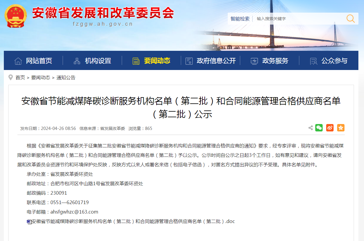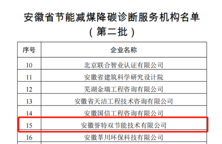 喜訊--熱烈祝賀公司雙入選安徽省第二批節(jié)能減煤降碳診斷服務(wù)機(jī)構(gòu)和合同能源管理合格供應(yīng)商名單