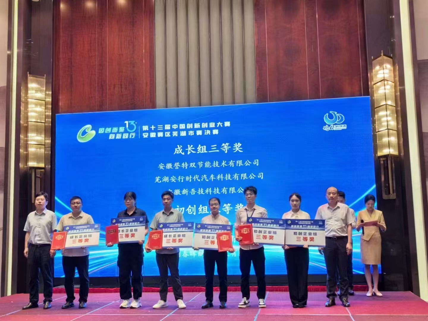 公司榮獲第十三屆中國創(chuàng)新創(chuàng)業(yè)大賽安徽賽區(qū)蕪湖市決賽三等獎